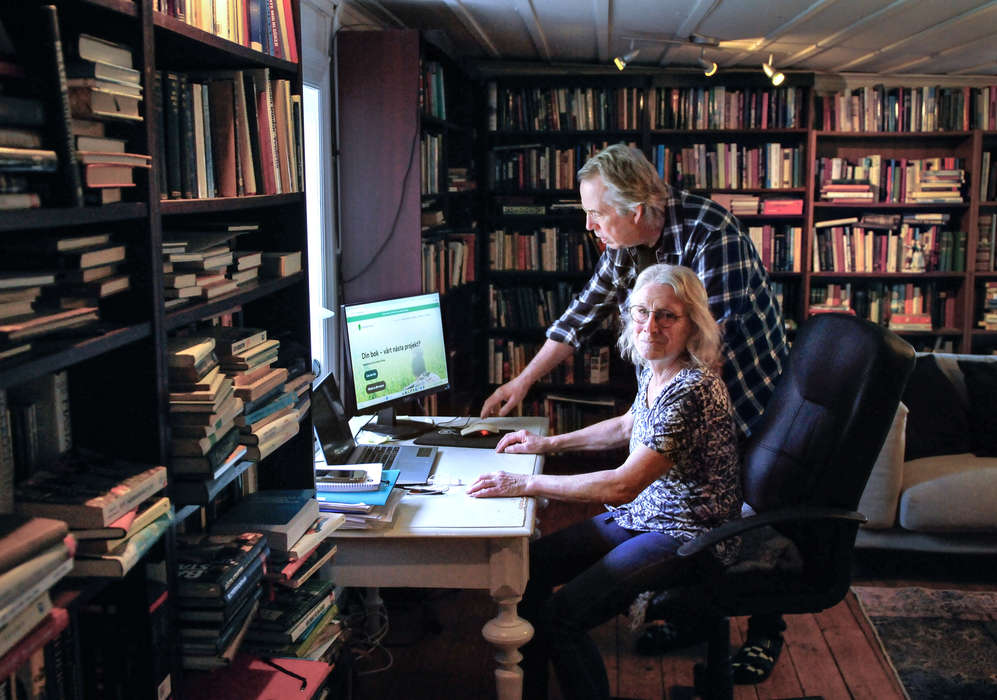 Karin och Jan Holmbom driver sitt förlag hemifrån huset i Linnefors som också fått ge sitt namn till förlaget. Foto: Elin Elderud