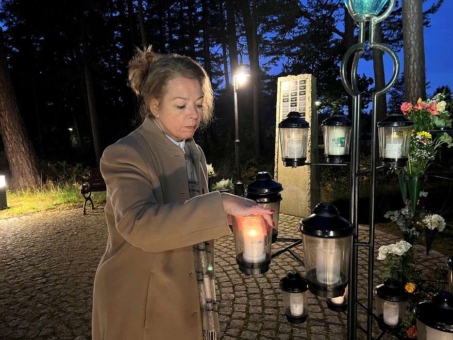 Erika Hellberg tänder ljus för dem som inte längre finns bland oss. Foto: Sara Anderberg