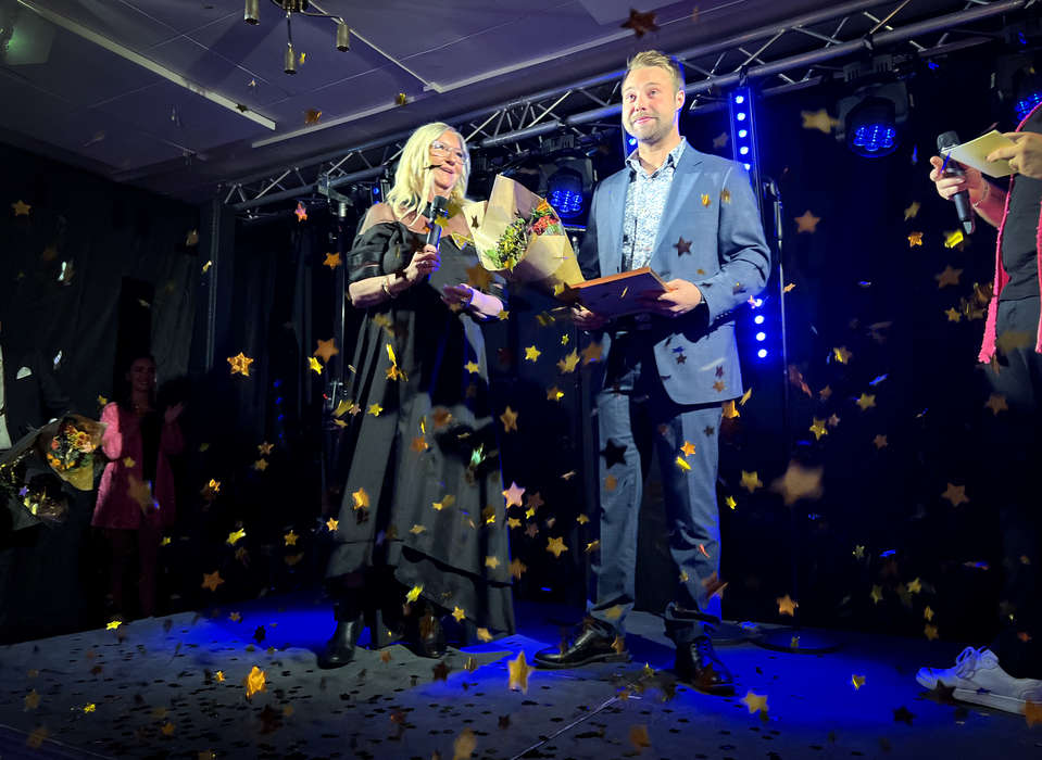 Jesper Ekström knep prispallens första plats som årets unga företagare. Jesper Ekström driver entreprenadfirma och är glatt överraskad över att få priset när han kliver upp för att te emot det. Företaget han driver jobbar med olika uppdrag mest åt kommunen i till exempel snösvängen.
