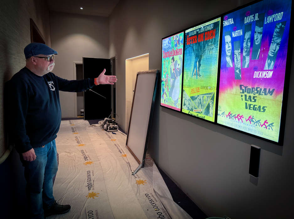 Jannes gamla filmaffischer har fått nytt liv i biokorridoren. Foto: Elin Elderud