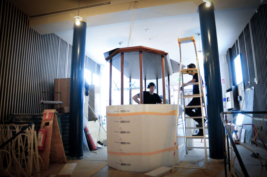 Den åttkantiga biljettkuren är inte en exakt kopia, den har blivit något rymligare. I foajén har också en handikapphiss installerats samt en anpassad toalett. Foto: Elin Elderud