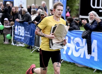 Alexander Tergeland tog hem specialpriset från Östgötatidningen och sprang med en tidningsbunten sista biten vilket var utmaningen.